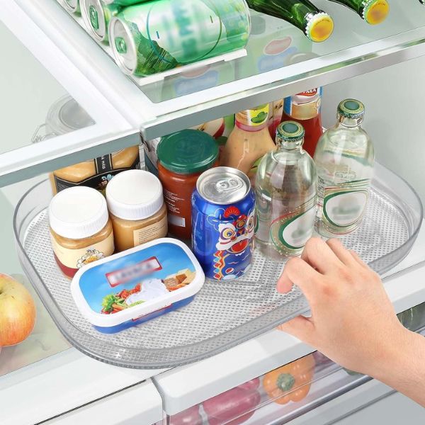 Tartsa rendben a hűtőszekrényét az átlátszó téglalap alakú hűtőszekrénytálcával. Ez a 360°-ban forgó hűtőszekrény szervező tökéletes a könnyű hozzáféréshez és a maximális helykihasználáshoz. Egyszerűen tisztítható, csúszásmentes tapadókorongokkal rendelkezik, és nem igényel telepítést.