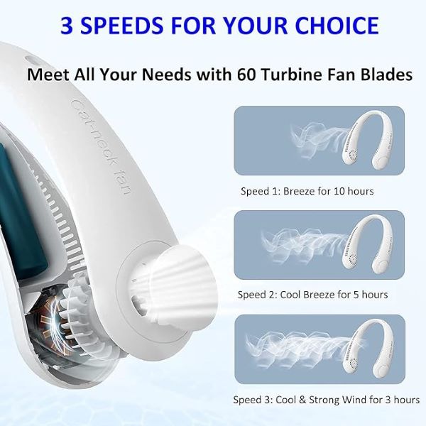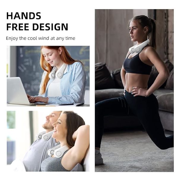 A ventilátor a nyakába akasztva kényelmesen biztosítja a kéz nélküli használat élményét. Ez a praktikus eszköz hűvösen és felfrissülten tartja Önt a forró napokon és estéken.