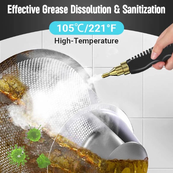 A 2500W névleges teljesítmény kevesebb mint 10 másodperc alatt akár 105℃-os gőzt állít elő, amely gyorsan eltávolítja a zsírt, koszt, port és foltokat különböző felületekről.